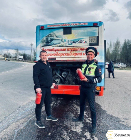 В Вологде сотрудники ДПС потушили загоревшийся автобус