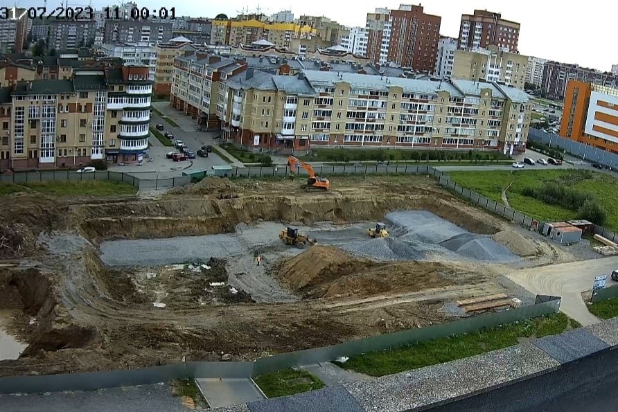 На стройке установили видеокамеру. Об этом сообщил начальник депздрава области Алексей Плотников. Поликлинику строят на улице Годовикова между зданием суда и ТРЦ «Июнь».