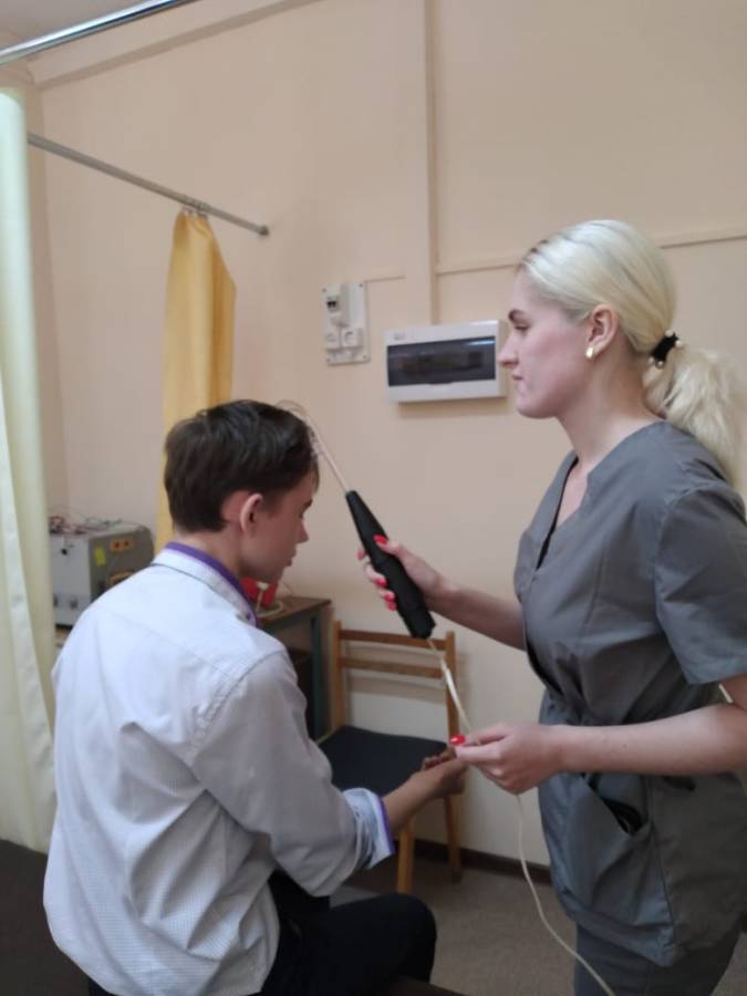 - В кабинете по физиотерапии медицинская сестра Москаль Е.С. рассказала про назначаемые процедуры и провела мастер класс с прибором Дарсонваль (Дарсонвализация - безболезненный и безопасный метод физиотерапии, состоящий в лечебном воздействии на клетки тела человека импульсного переменного тока различной частоты).