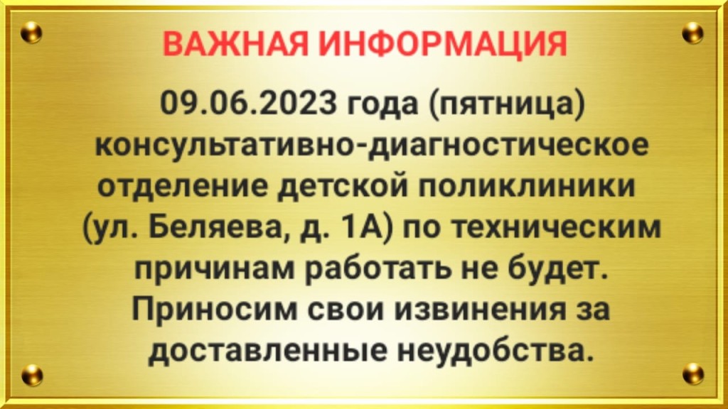 Со всеми пациентами, чья запись к врачам-специалистам была на 09.06.2023 г., сотрудники поликлиники свяжутся по контактному номеру телефона для перенесения записи на другую дату», - сообщает администрация поликлиники в группе VK.