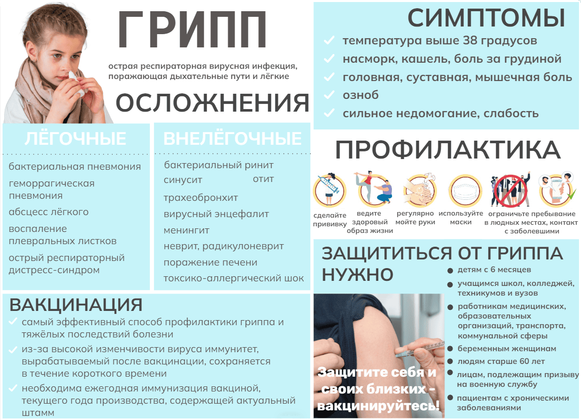Вакцинация - наиболее эффективный способ профилактики. В случае заболевания она не только поможет легче перенести грипп, но и минимизирует число возможных осложнений.