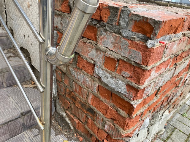 Для предотвращения дальнейшего разрушения клумбу демонтировали. Затем восстановили покрытие (уложив новую тротуарную плитку) и выполнили дополнительную облицовку несущей колонны.
