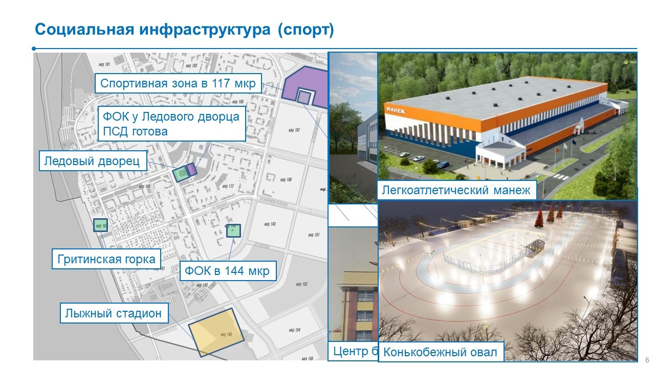 "Уже готова проектно-сметная документация для пристройки к Ледовому дворцу специального комплекса. Он позволит существенно увеличить площади для занятий физкультурой. Между Ленинградской и Раахе запланирован целый спортивный квартал. Здесь появятся новое здание Центра боевых искусств и крытый манеж с ледовым овалом", - написал он на своей странице ВК.