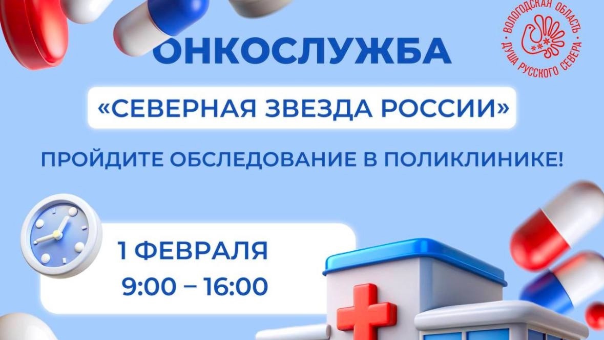 1 февраля в Вологде стартует акция « Онкослужба “Северная звезда России” ». Каждую субботу в городе будут проходить бесплатные онкодиагностики для всех желающих.