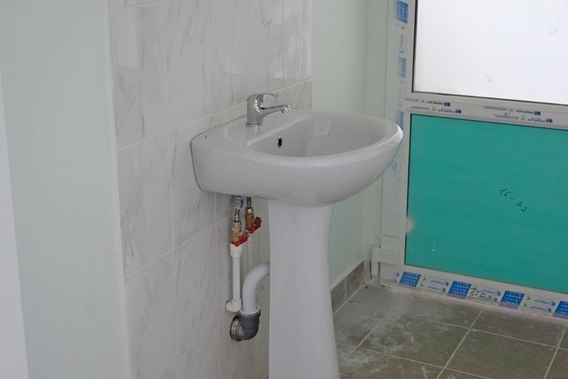 Сейчас заканчивается отделка фасада. В помещениях красят стены, устанавливают сантехнику и монтируют индивидуальные консоли со светильниками, розетками и клапанами для подачи медицинских газов.