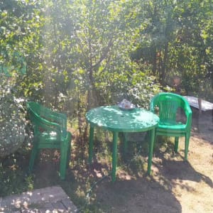 Во дворе есть место для отдыха, стоянка для автомобилей, предоставляется мангал, набор уличной мебели, беседки.